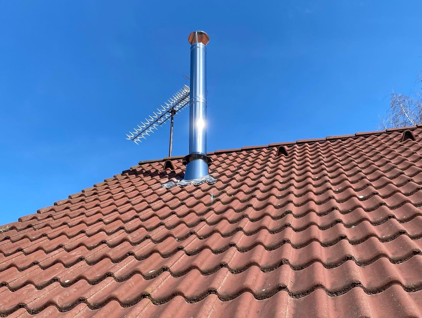 Střešní prostup v podobě olověného pásu a nerezového kónusu je určen pro oplechování nerezových komínů MKD. Tento prostup je určen pro profilované krytiny (vlnitý plech, taška, apod). Pro ploché krytiny (rovný plech, rovné tašky, šindel, lepenka, apod) je nutné použít prostup nerezový.